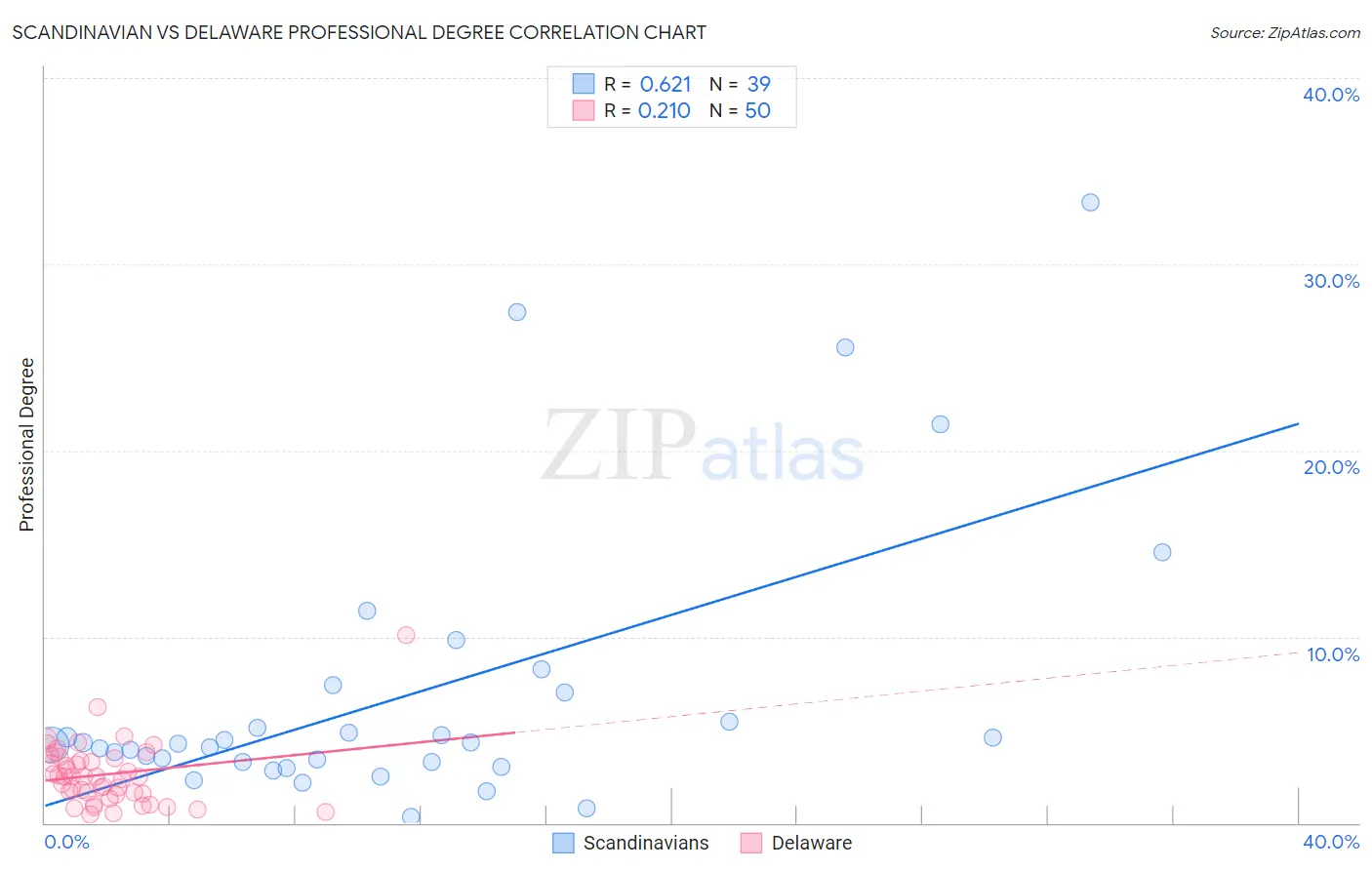 Scandinavian vs Delaware Professional Degree Correlation Chart