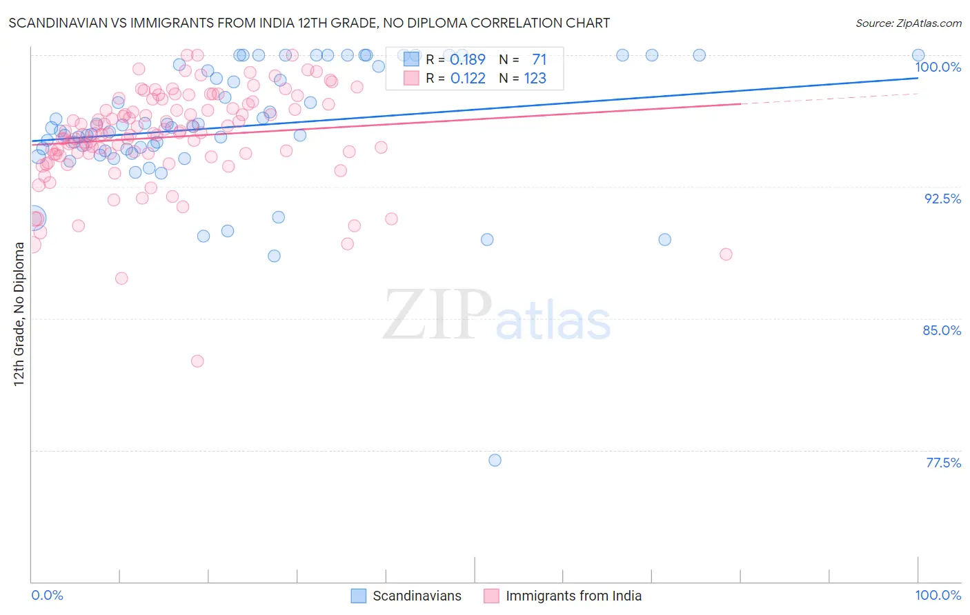 Scandinavian vs Immigrants from India 12th Grade, No Diploma Correlation Chart