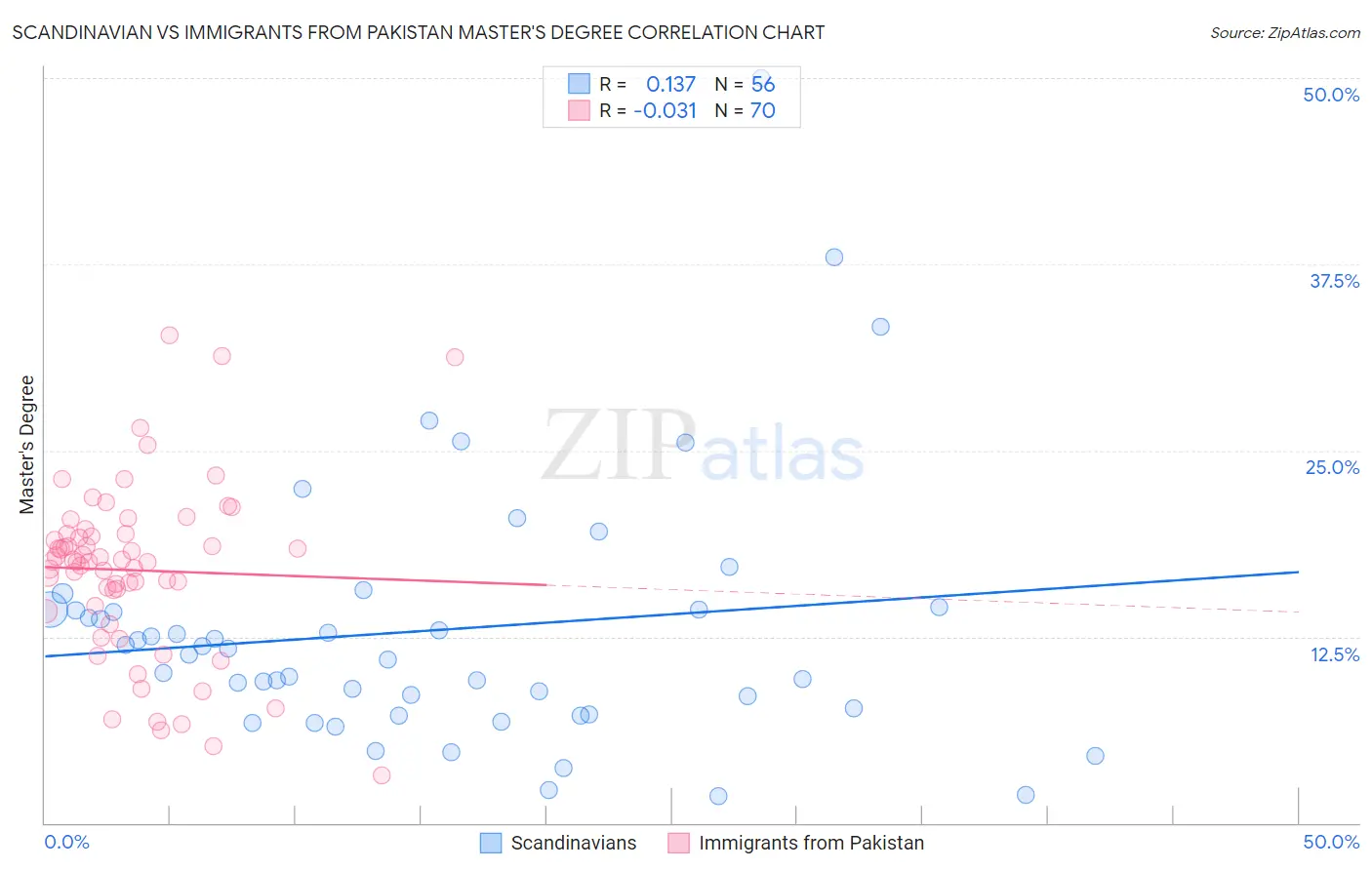 Scandinavian vs Immigrants from Pakistan Master's Degree Correlation Chart