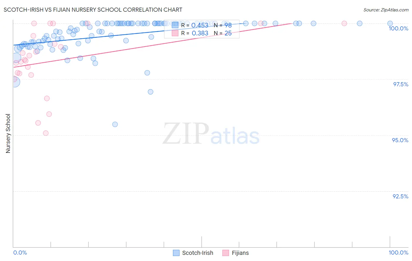 Scotch-Irish vs Fijian Nursery School Correlation Chart