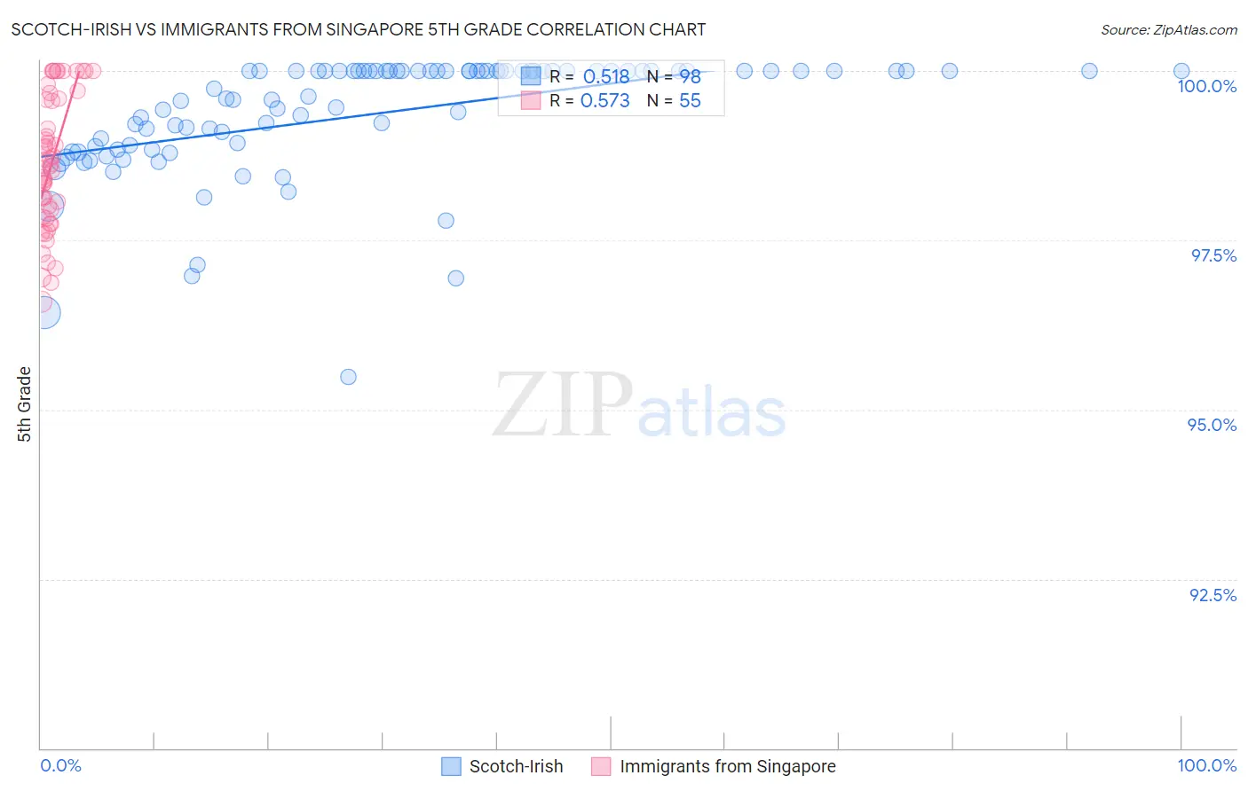 Scotch-Irish vs Immigrants from Singapore 5th Grade Correlation Chart
