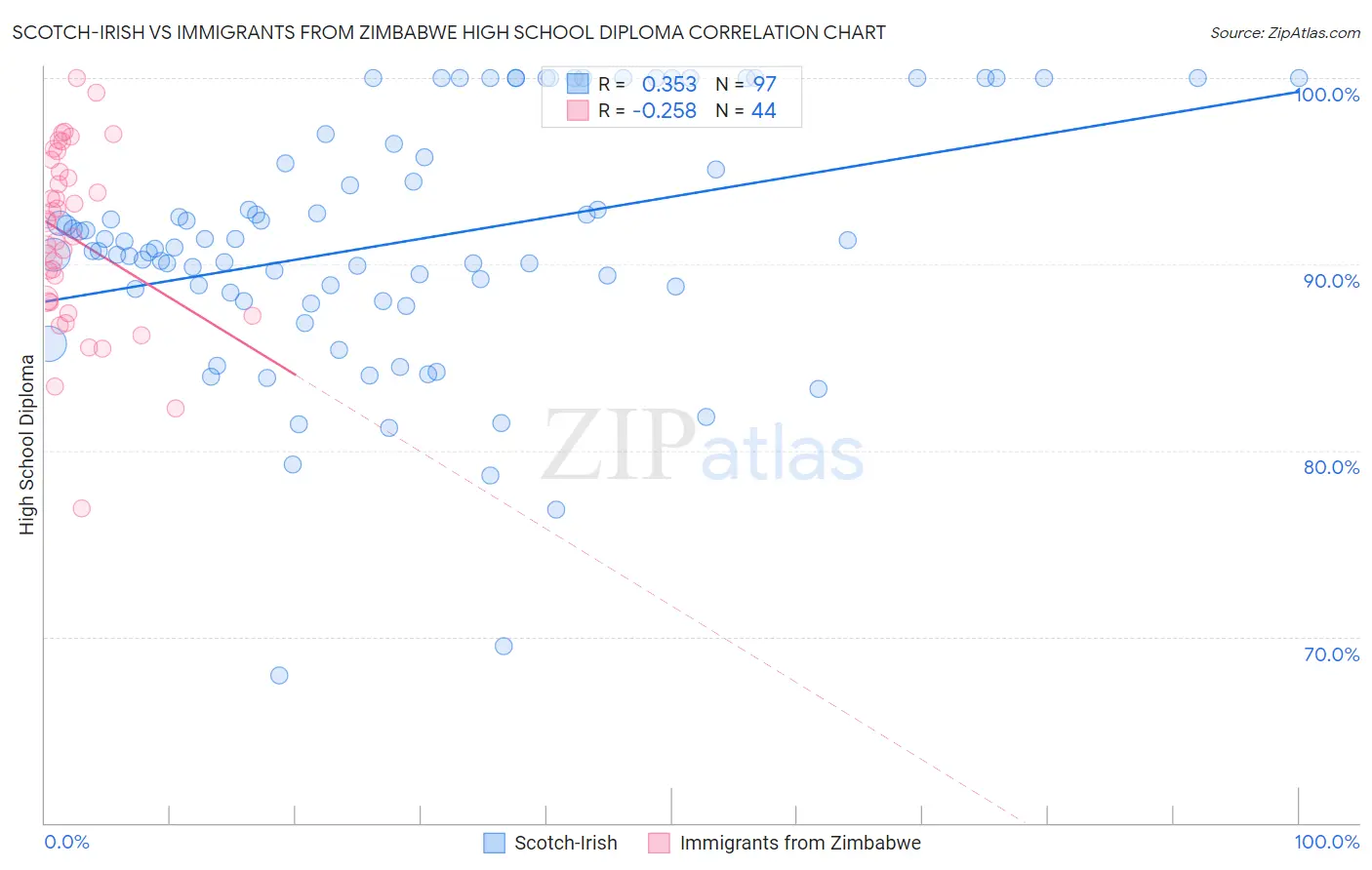 Scotch-Irish vs Immigrants from Zimbabwe High School Diploma Correlation Chart
