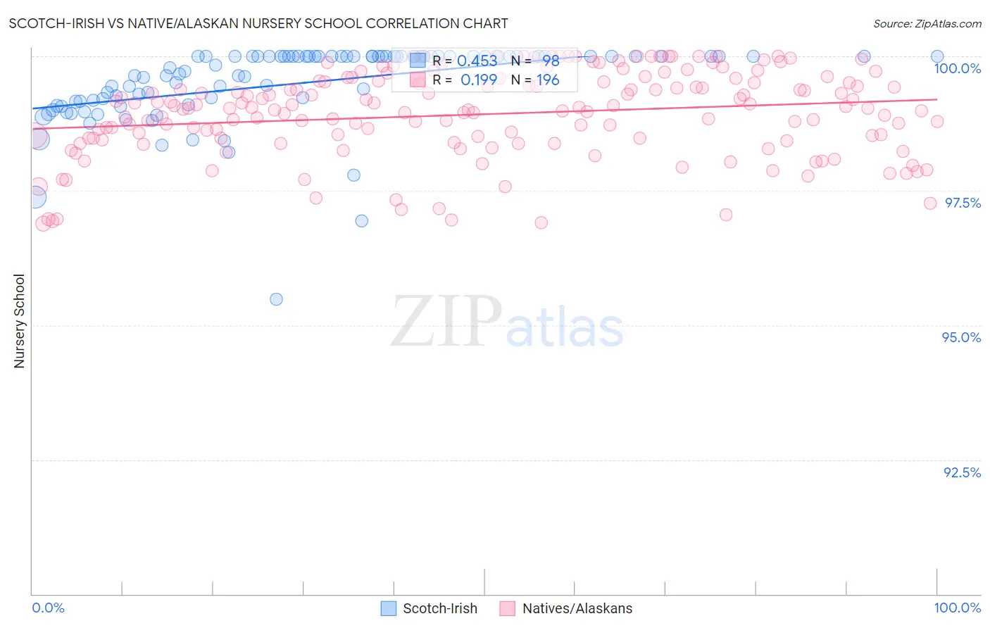 Scotch-Irish vs Native/Alaskan Nursery School Correlation Chart