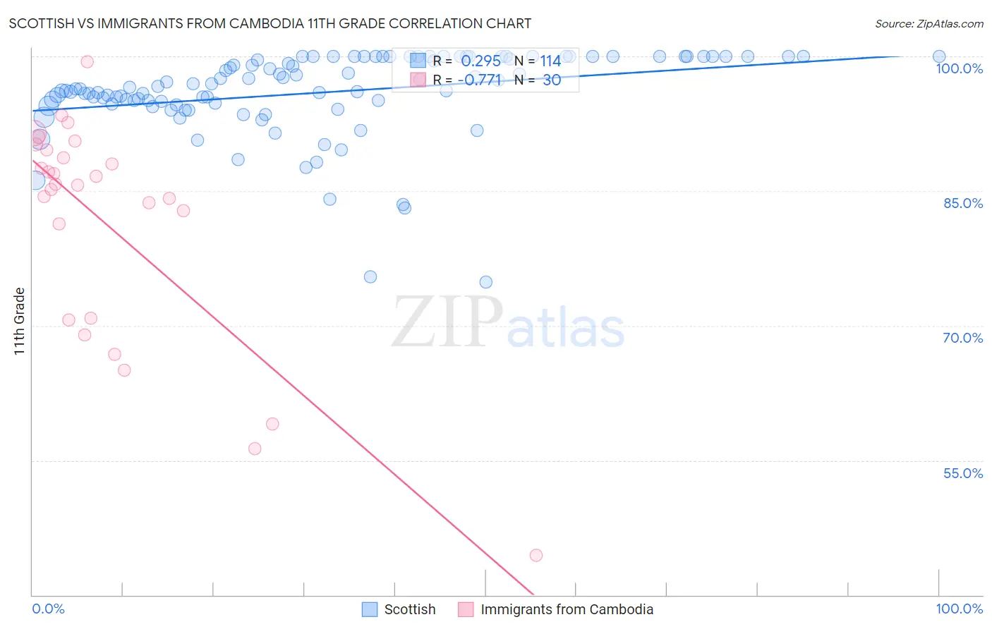 Scottish vs Immigrants from Cambodia 11th Grade Correlation Chart