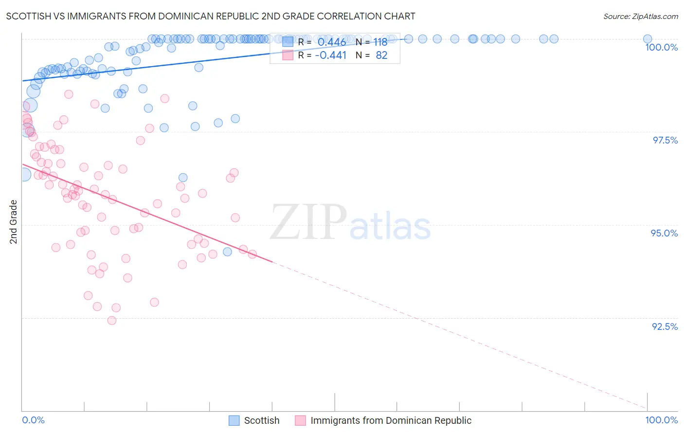 Scottish vs Immigrants from Dominican Republic 2nd Grade Correlation Chart
