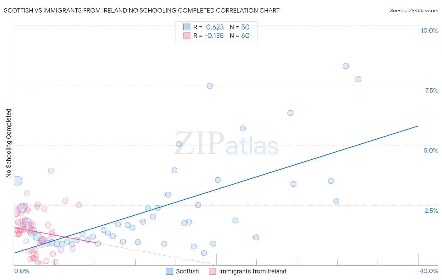 Scottish vs Immigrants from Ireland No Schooling Completed Correlation Chart