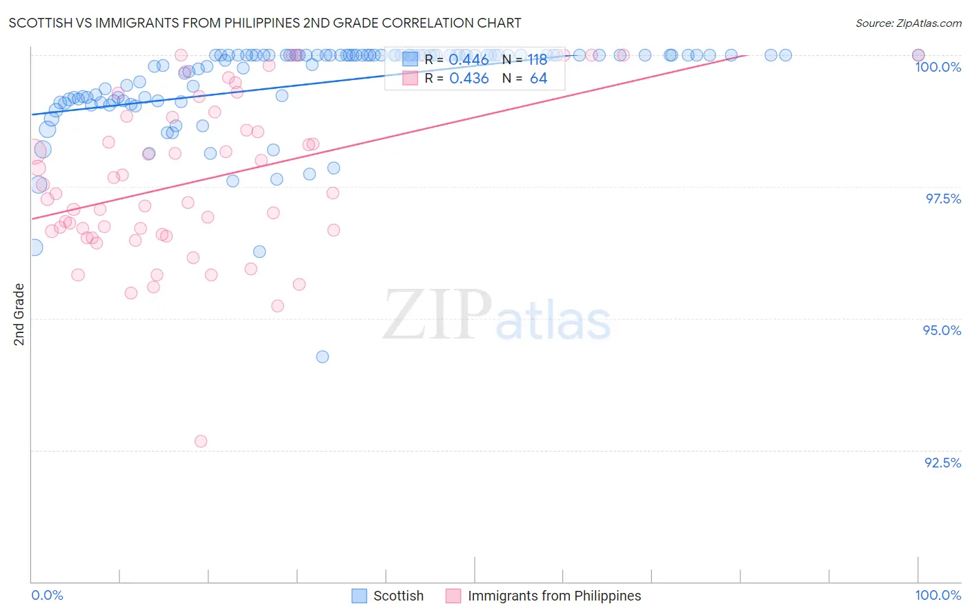 Scottish vs Immigrants from Philippines 2nd Grade Correlation Chart