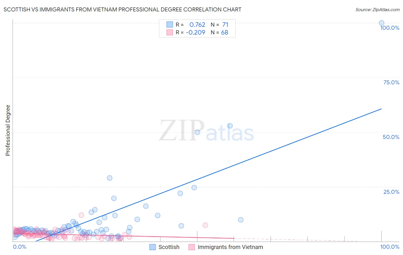 Scottish vs Immigrants from Vietnam Professional Degree Correlation Chart