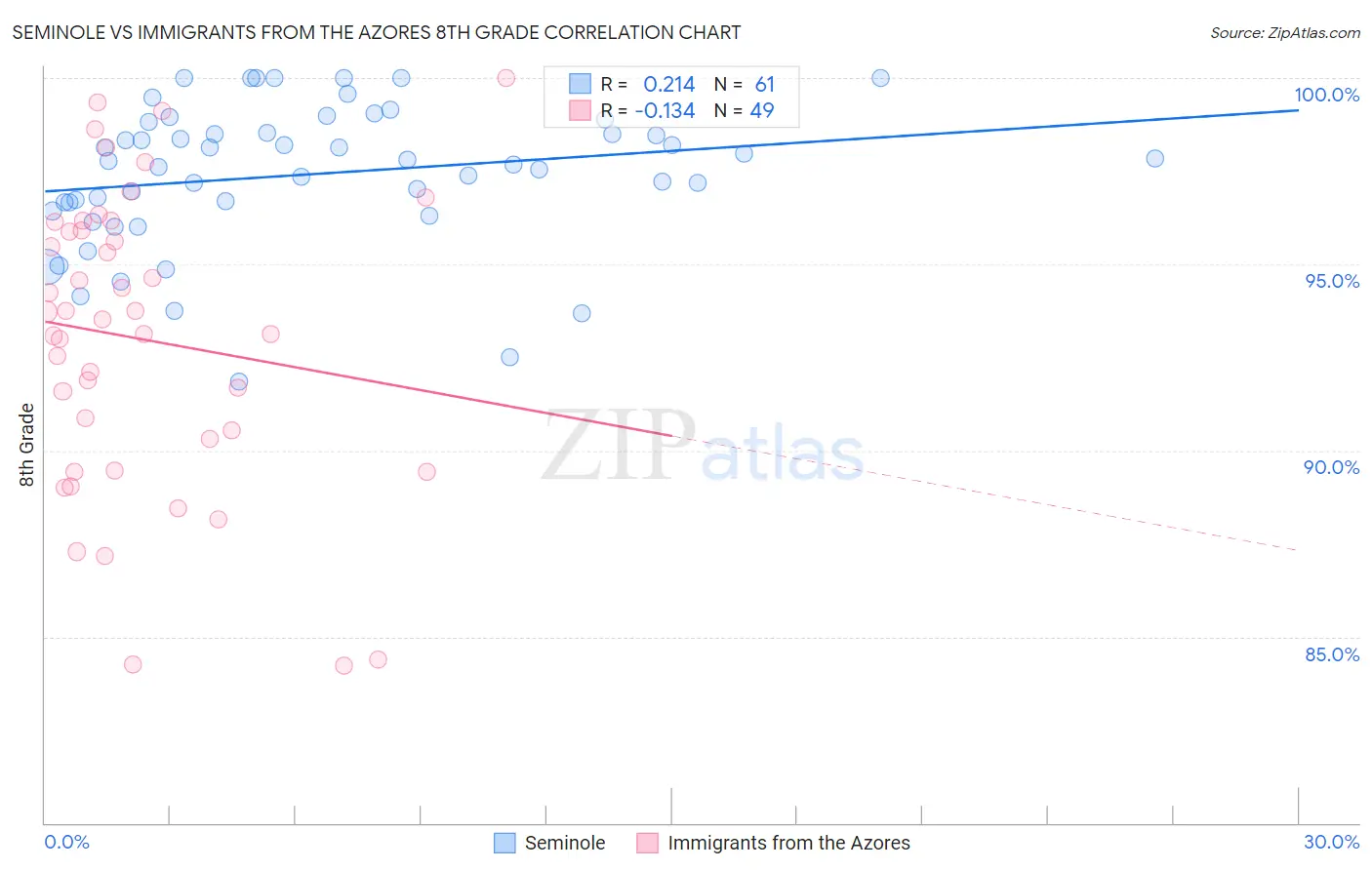 Seminole vs Immigrants from the Azores 8th Grade Correlation Chart