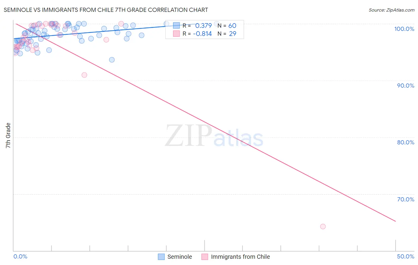 Seminole vs Immigrants from Chile 7th Grade Correlation Chart