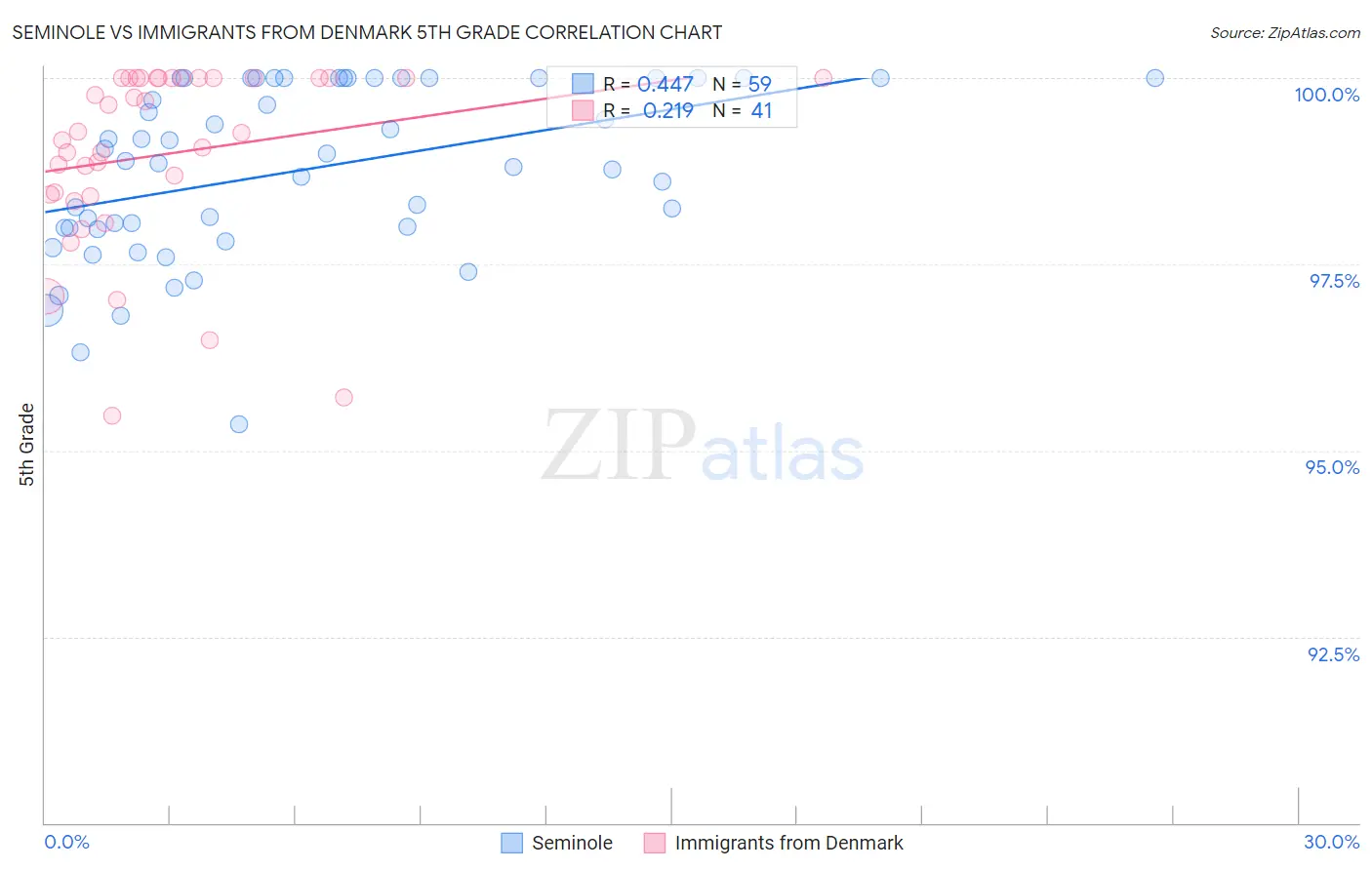 Seminole vs Immigrants from Denmark 5th Grade Correlation Chart