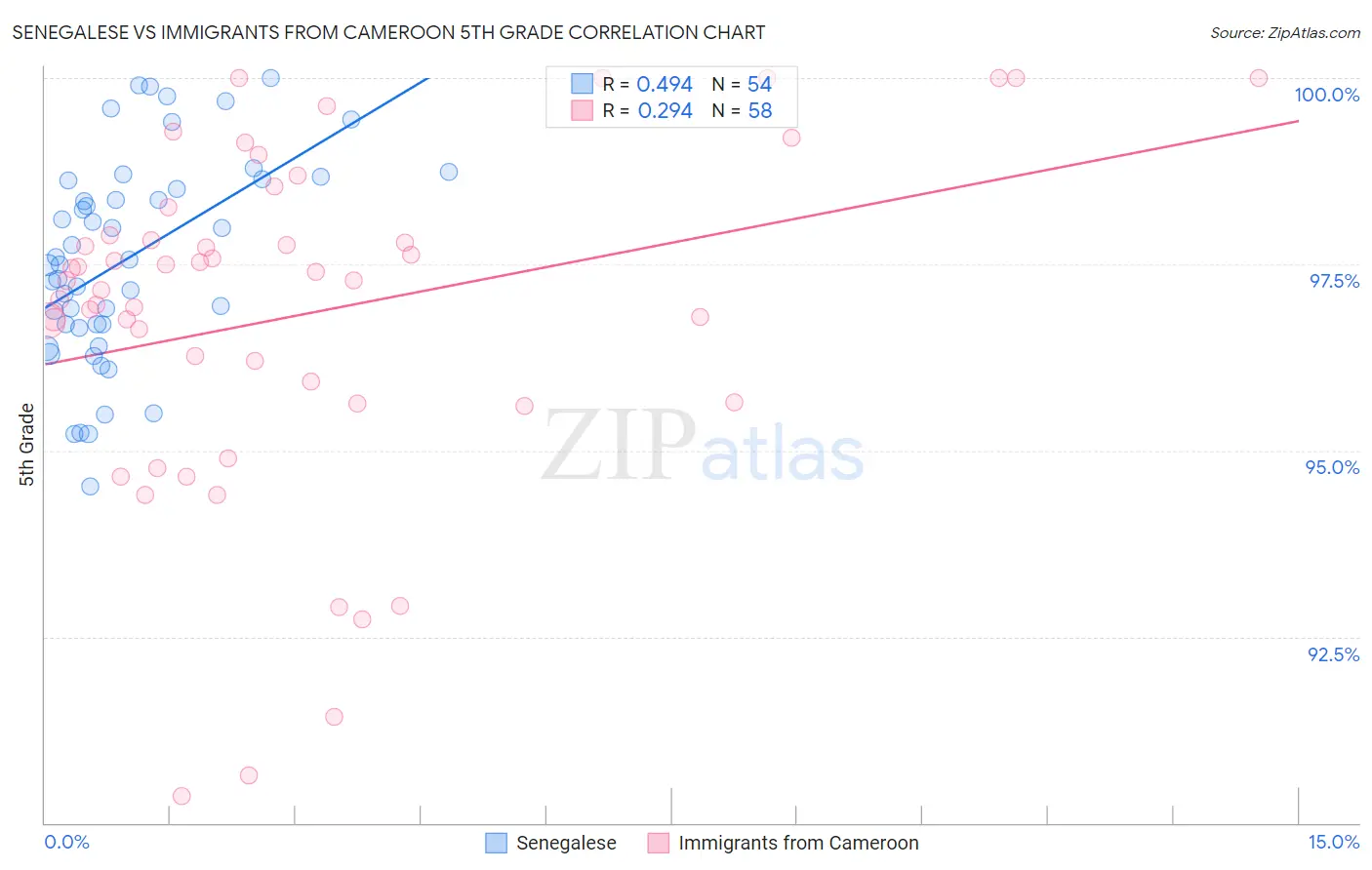 Senegalese vs Immigrants from Cameroon 5th Grade Correlation Chart