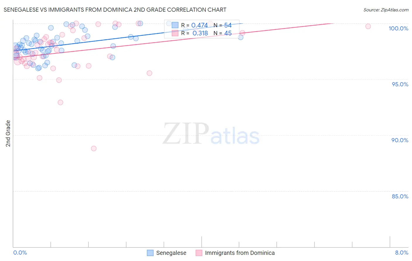 Senegalese vs Immigrants from Dominica 2nd Grade Correlation Chart