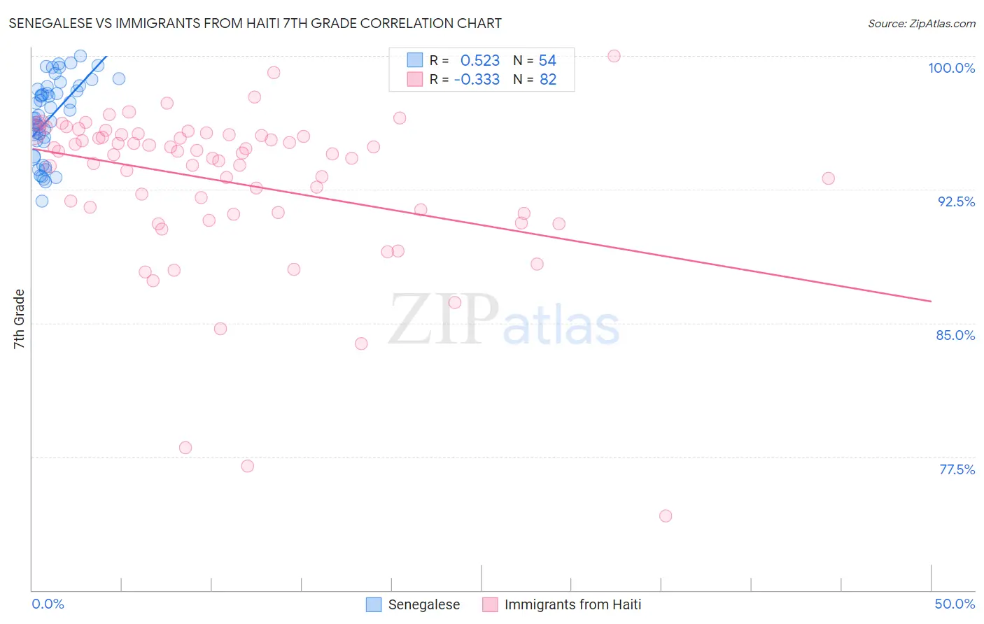 Senegalese vs Immigrants from Haiti 7th Grade Correlation Chart