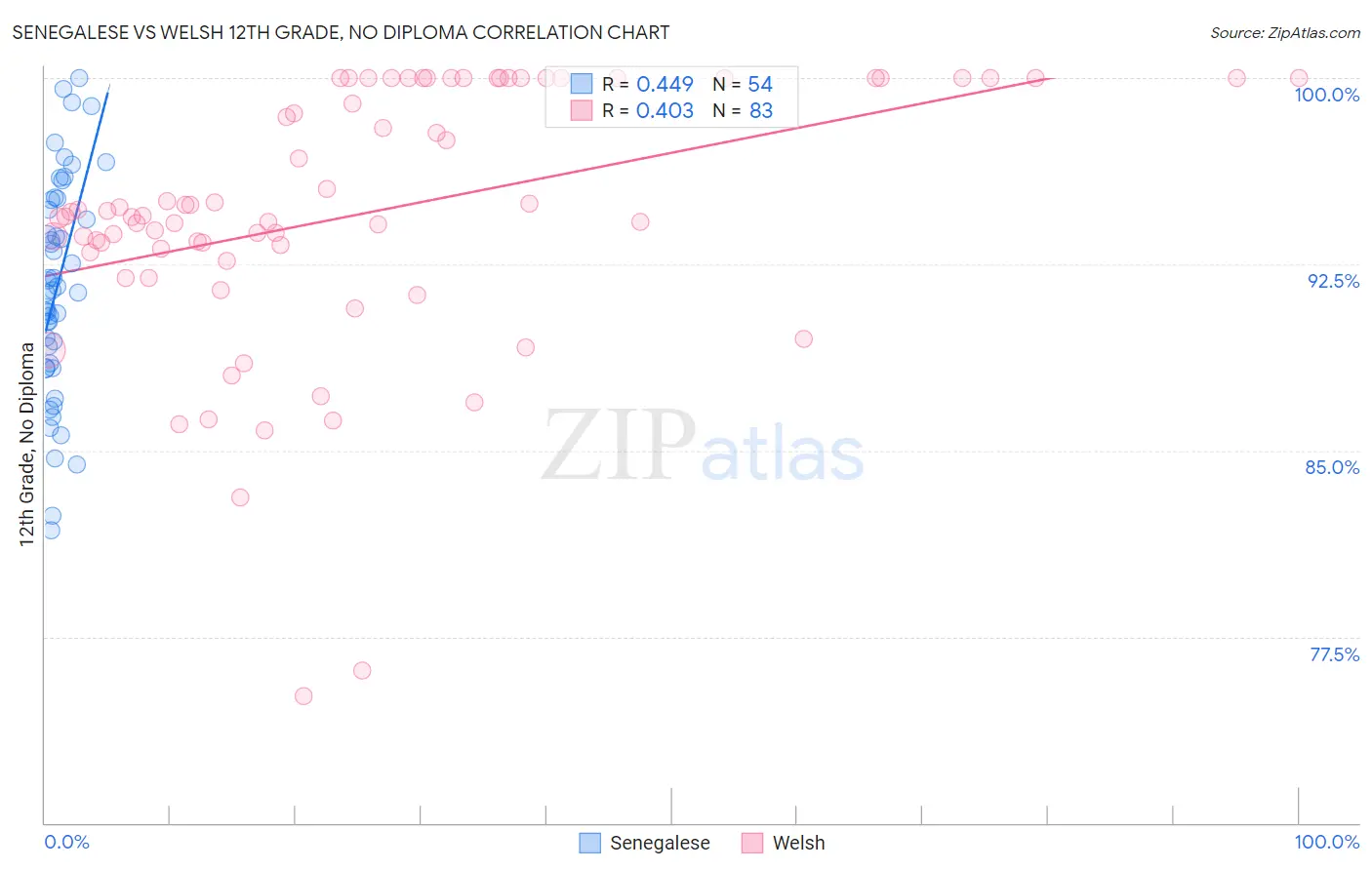 Senegalese vs Welsh 12th Grade, No Diploma Correlation Chart