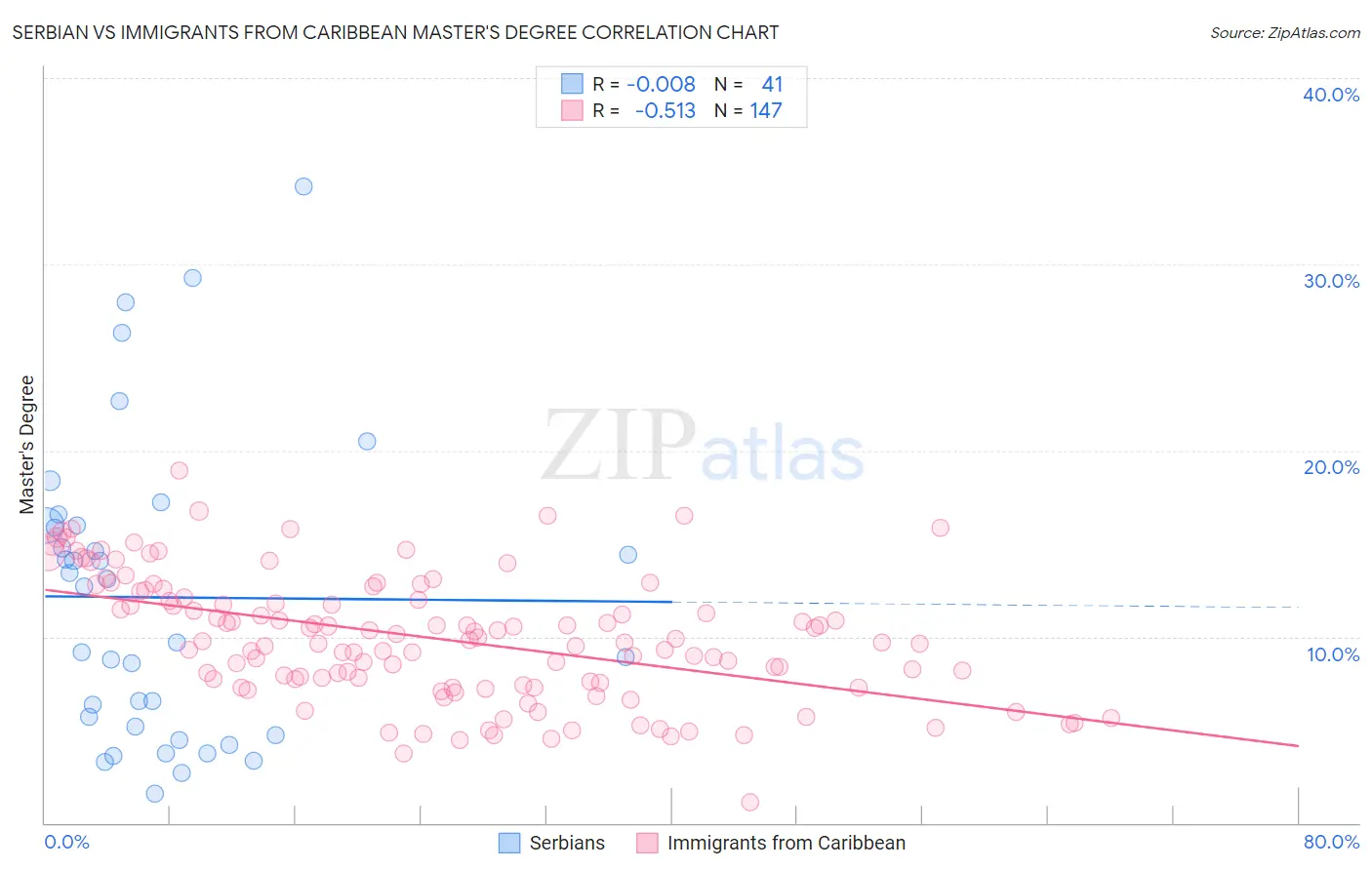 Serbian vs Immigrants from Caribbean Master's Degree Correlation Chart