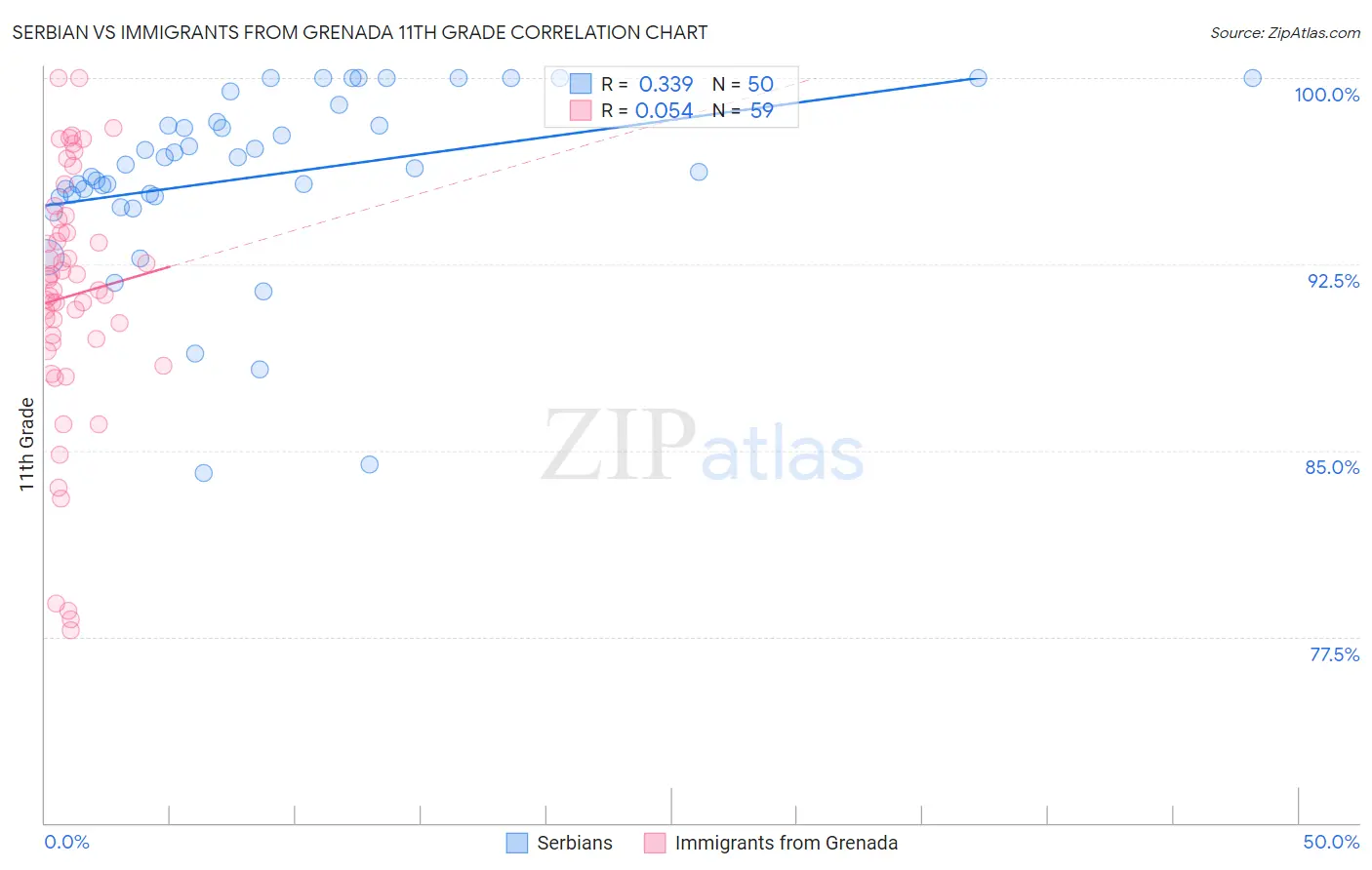 Serbian vs Immigrants from Grenada 11th Grade Correlation Chart