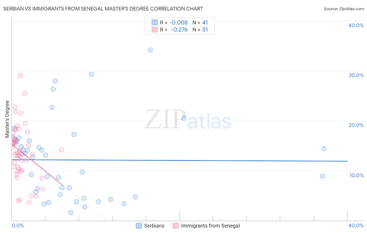 Serbian vs Immigrants from Senegal Master's Degree Correlation Chart