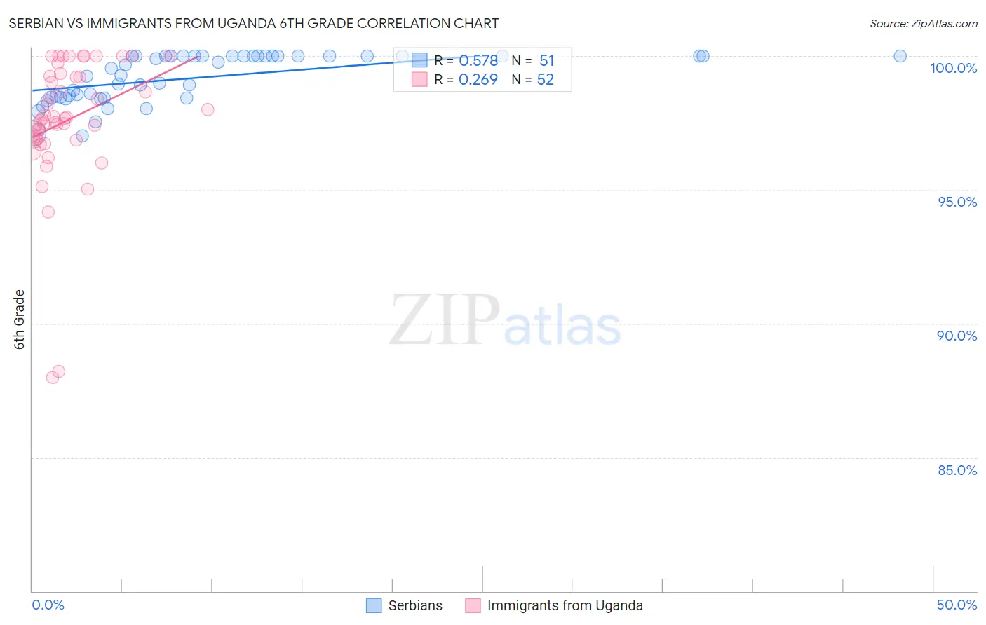 Serbian vs Immigrants from Uganda 6th Grade Correlation Chart