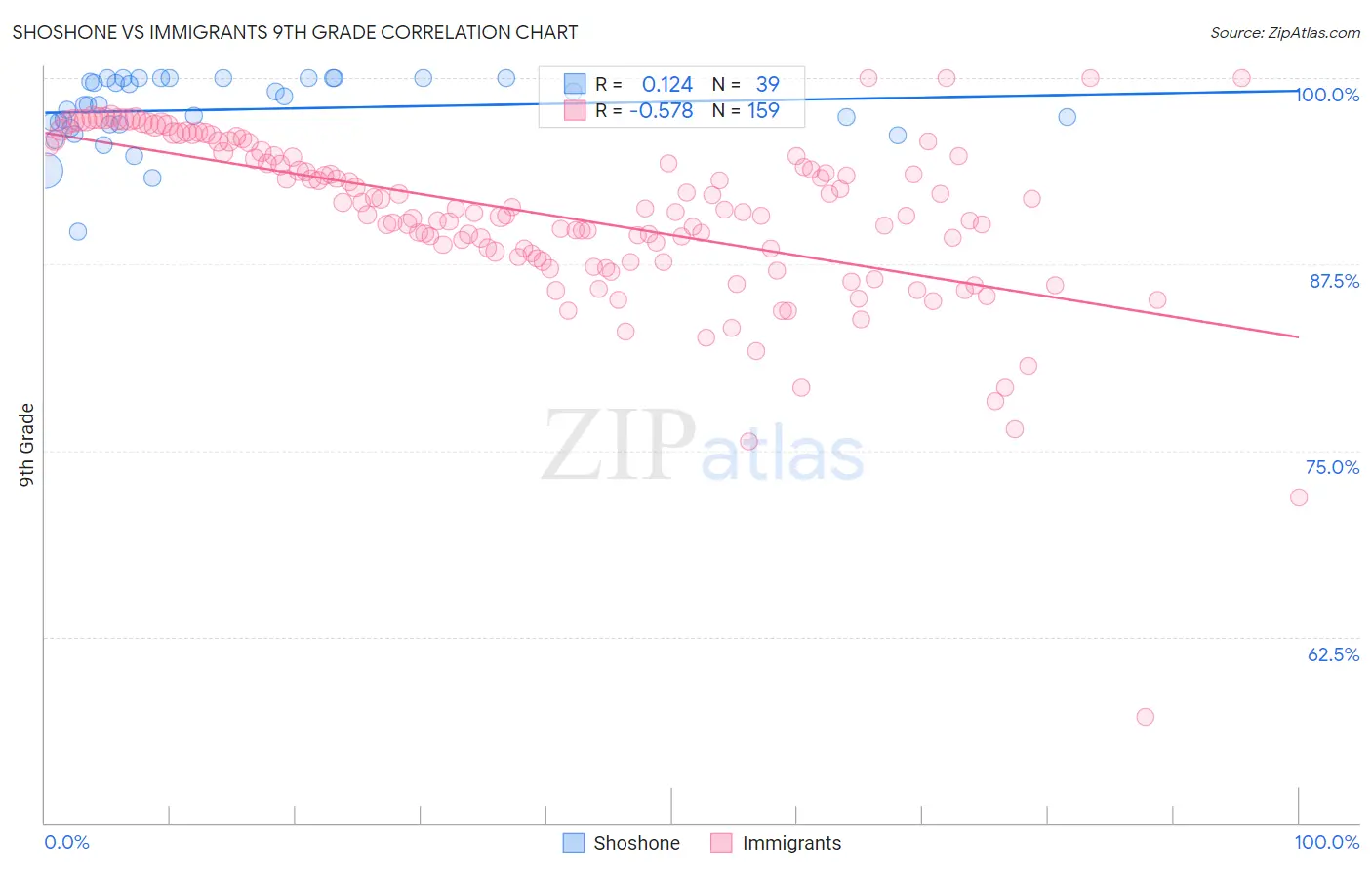 Shoshone vs Immigrants 9th Grade Correlation Chart
