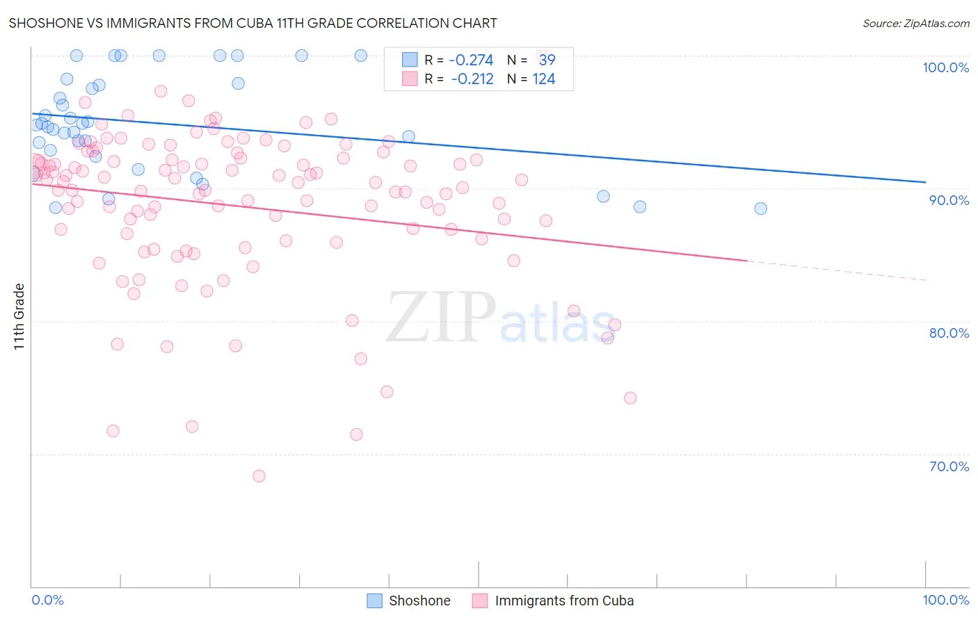 Shoshone vs Immigrants from Cuba 11th Grade Correlation Chart
