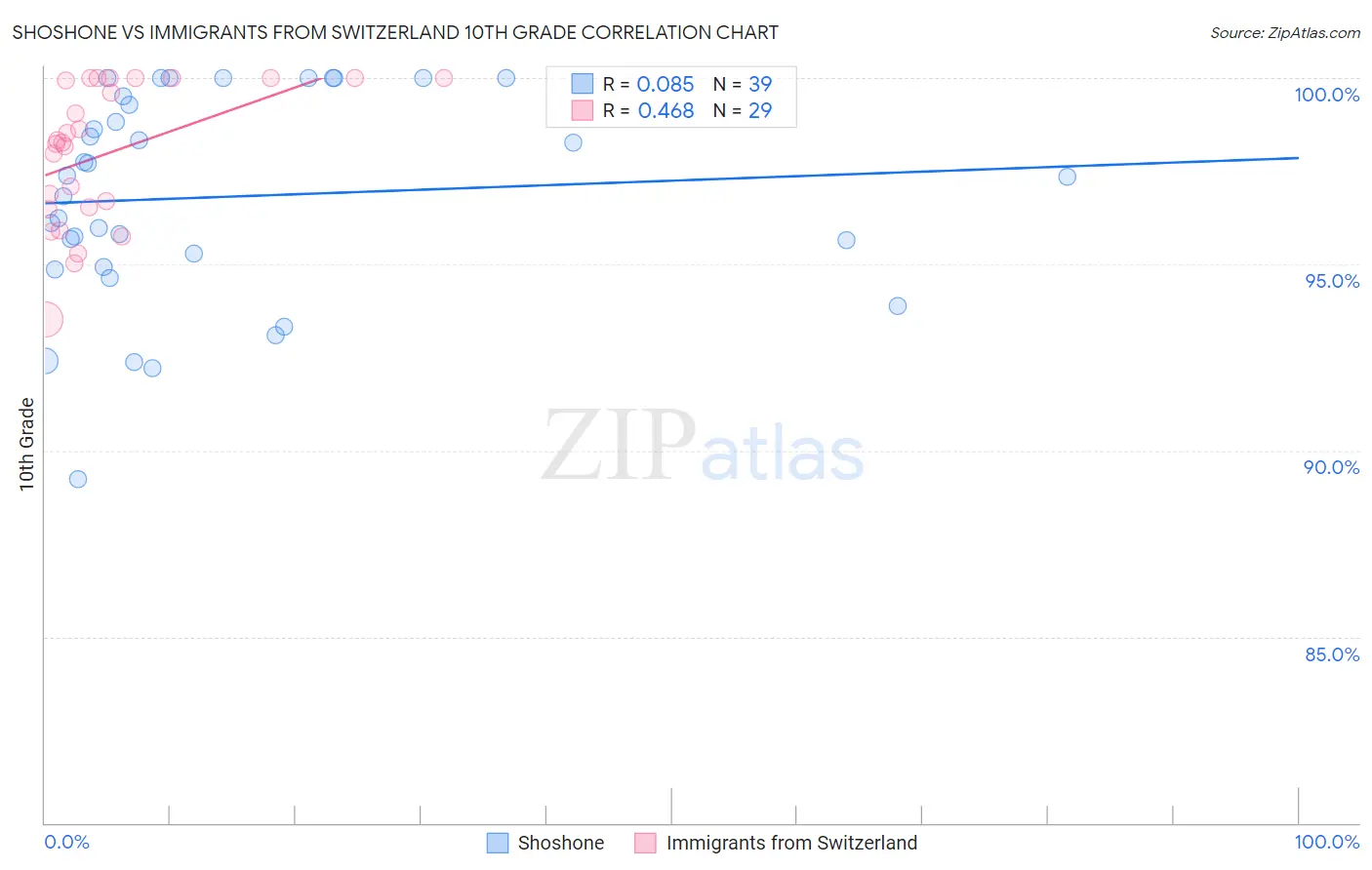 Shoshone vs Immigrants from Switzerland 10th Grade Correlation Chart