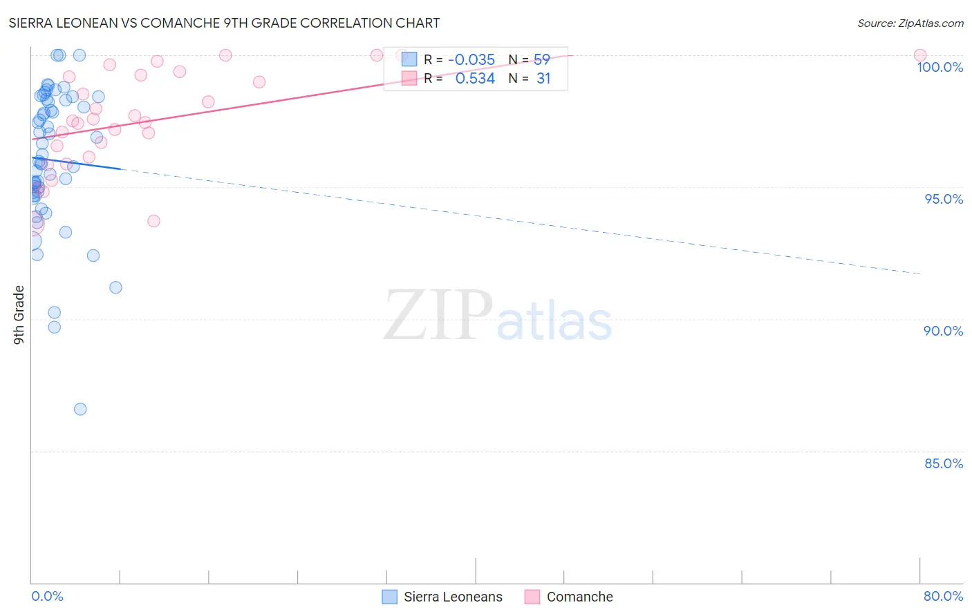 Sierra Leonean vs Comanche 9th Grade Correlation Chart