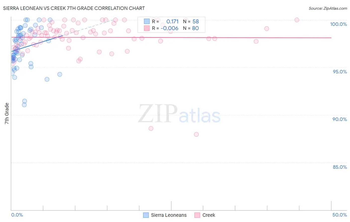 Sierra Leonean vs Creek 7th Grade Correlation Chart