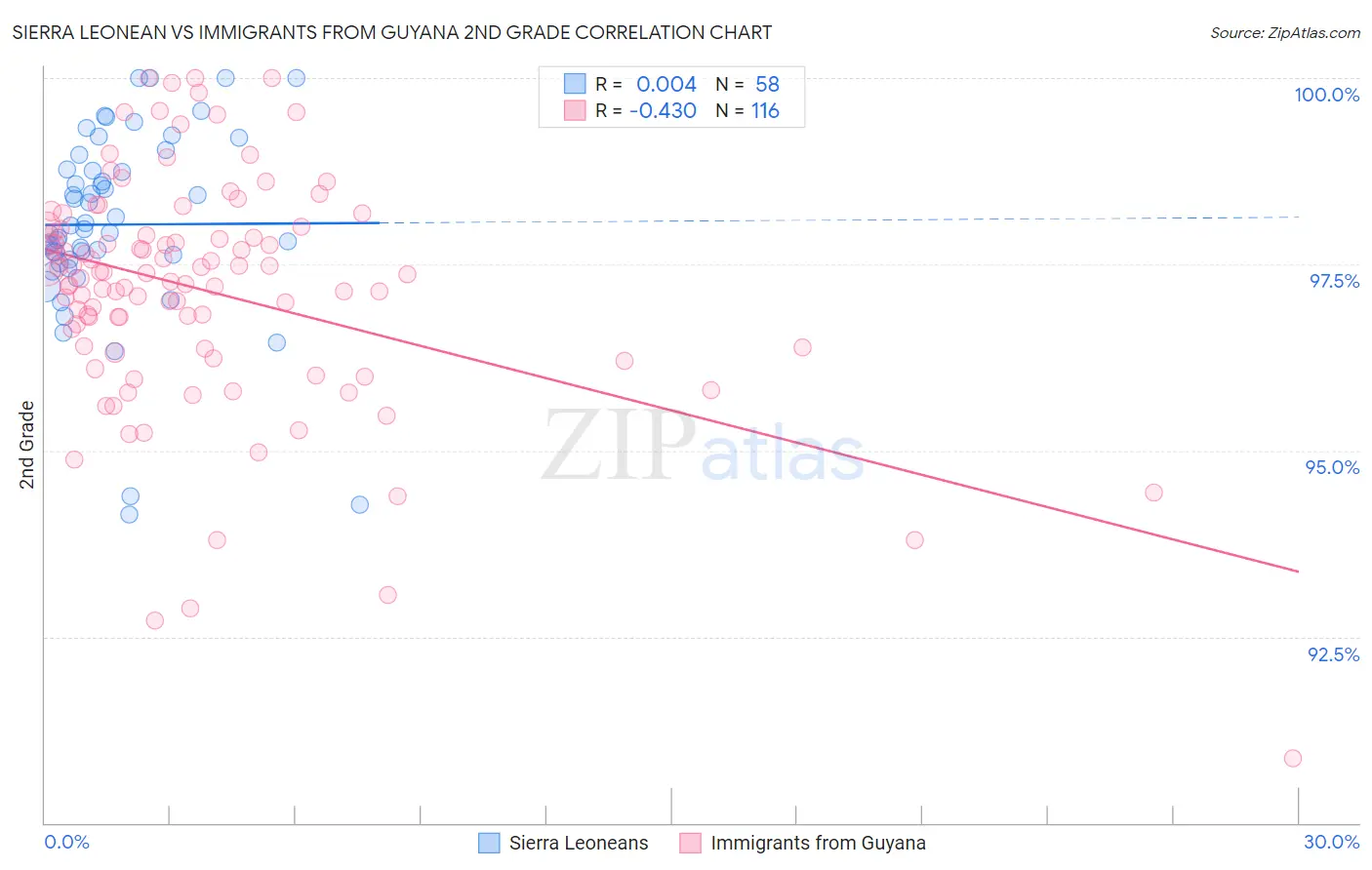 Sierra Leonean vs Immigrants from Guyana 2nd Grade Correlation Chart
