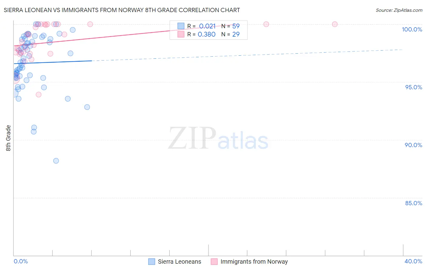 Sierra Leonean vs Immigrants from Norway 8th Grade Correlation Chart