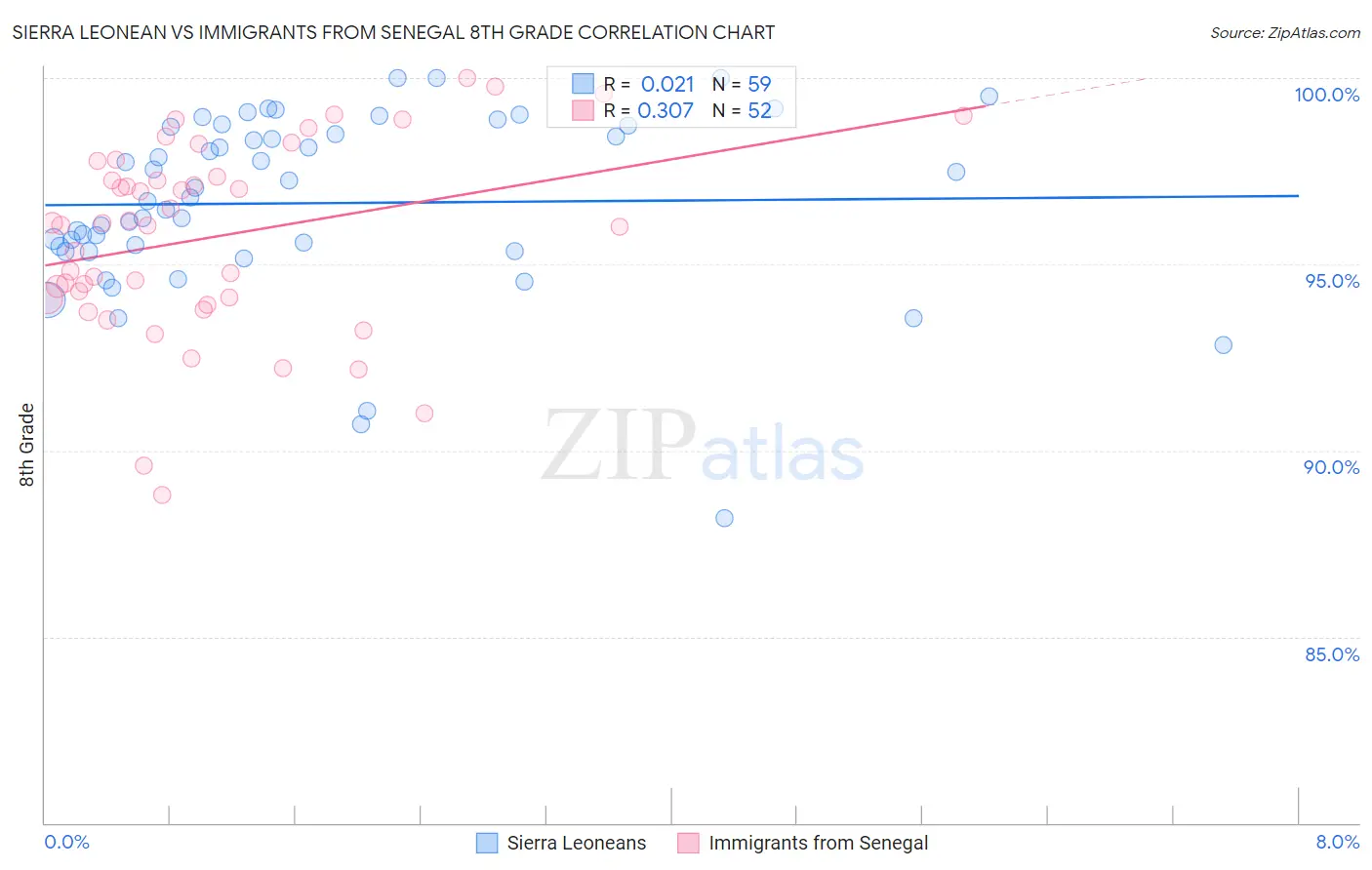 Sierra Leonean vs Immigrants from Senegal 8th Grade Correlation Chart