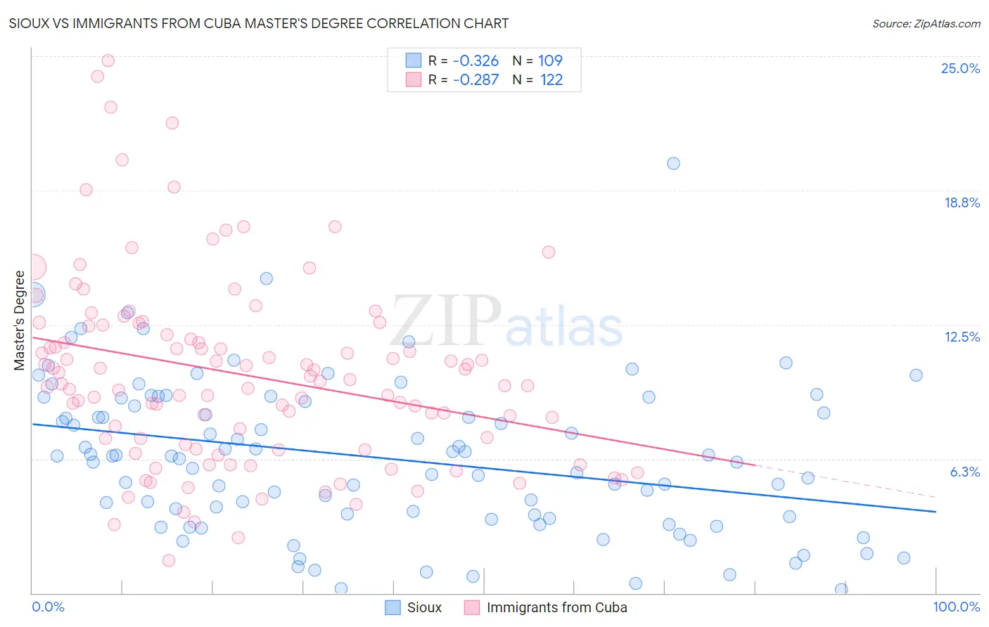 Sioux vs Immigrants from Cuba Master's Degree Correlation Chart
