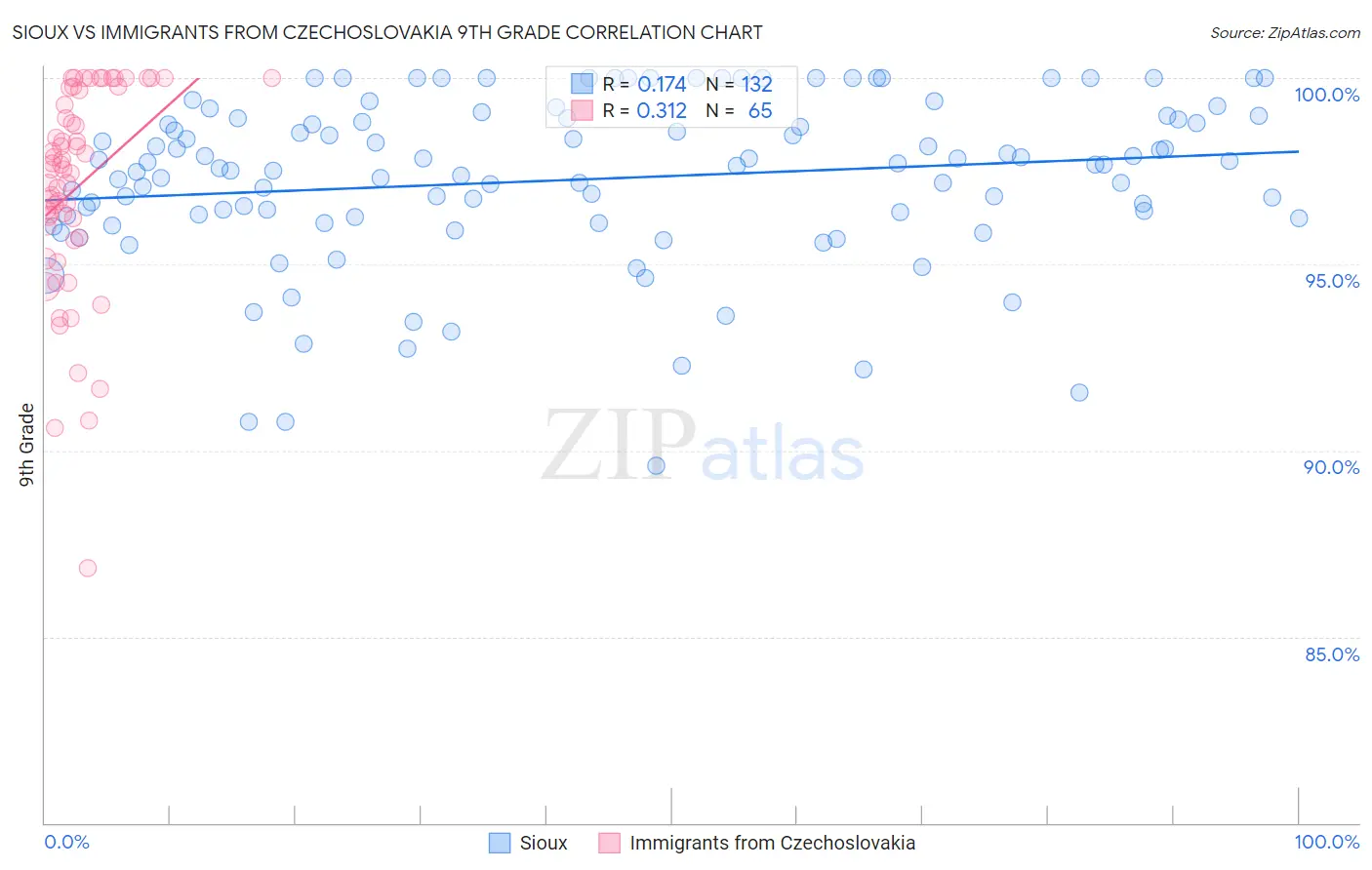 Sioux vs Immigrants from Czechoslovakia 9th Grade Correlation Chart