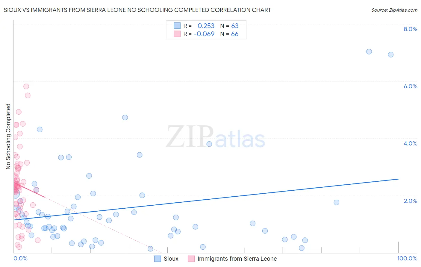 Sioux vs Immigrants from Sierra Leone No Schooling Completed Correlation Chart