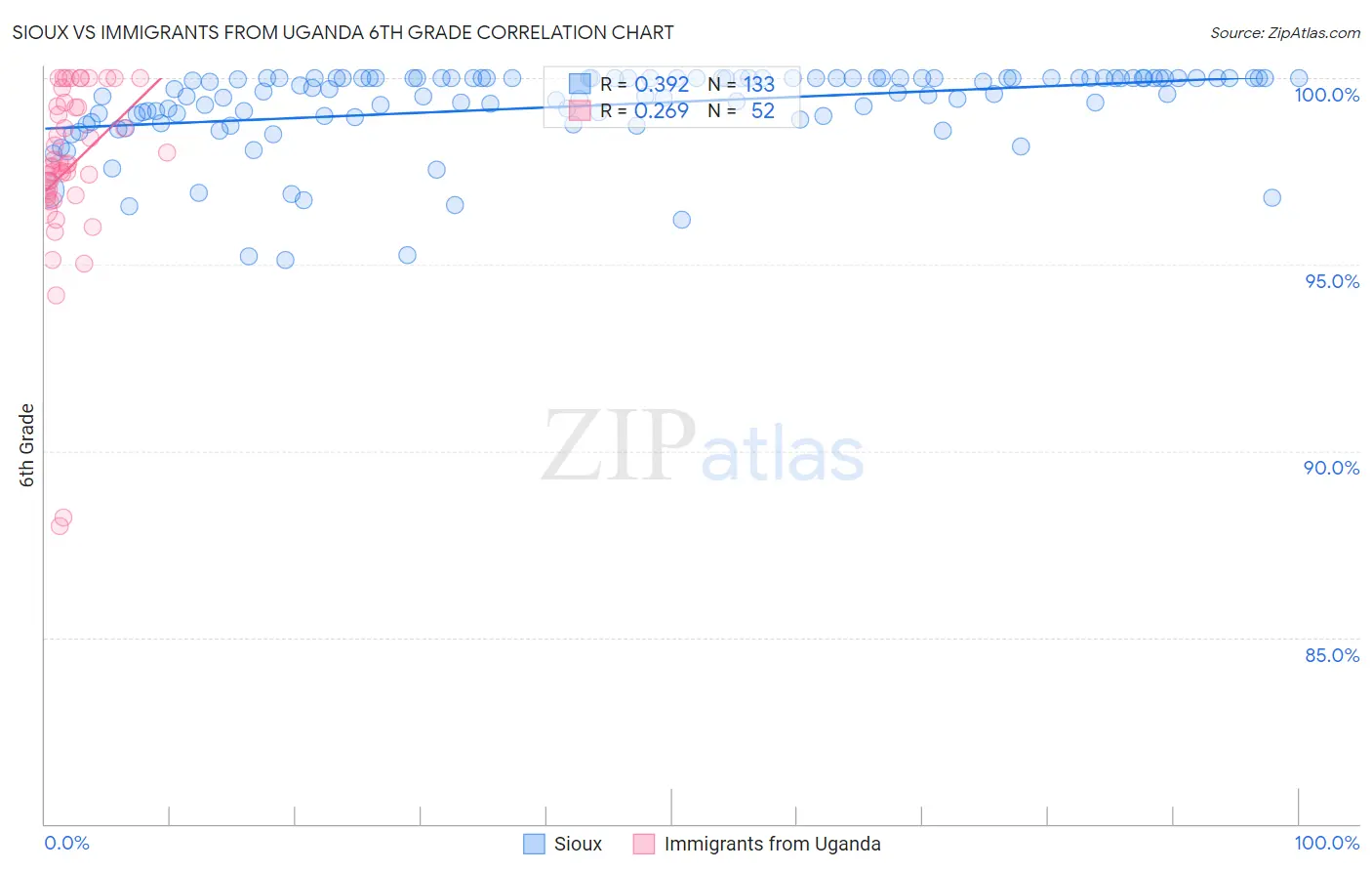 Sioux vs Immigrants from Uganda 6th Grade Correlation Chart