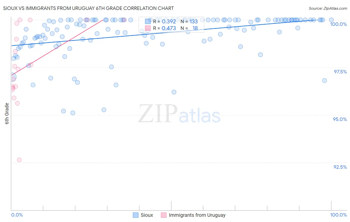Sioux vs Immigrants from Uruguay 6th Grade Correlation Chart