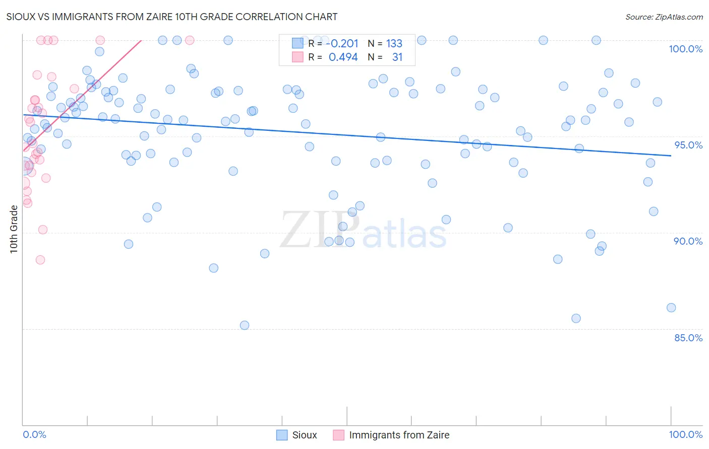Sioux vs Immigrants from Zaire 10th Grade Correlation Chart
