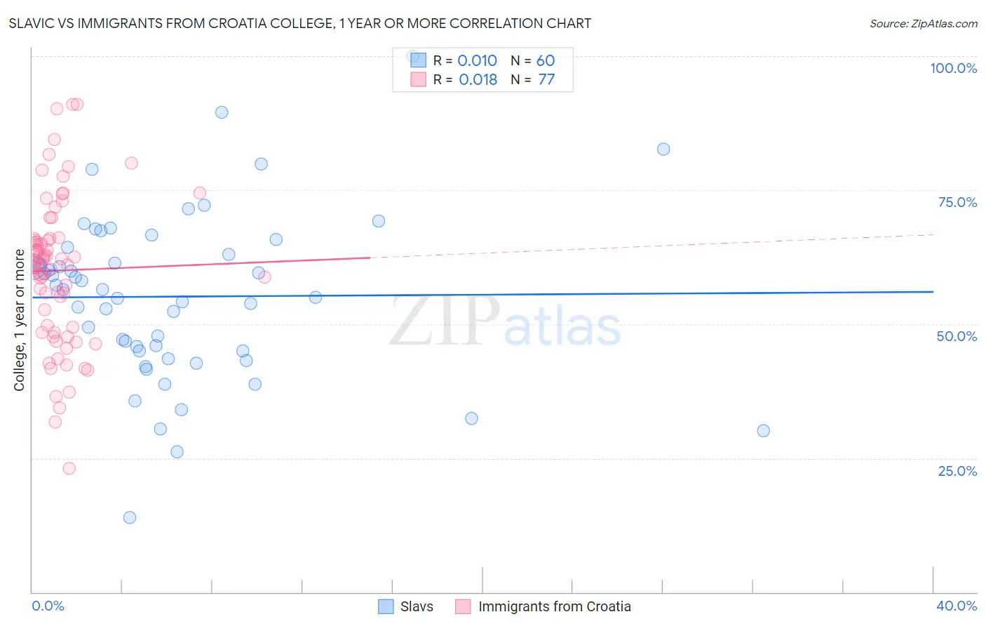 Slavic vs Immigrants from Croatia College, 1 year or more Correlation Chart