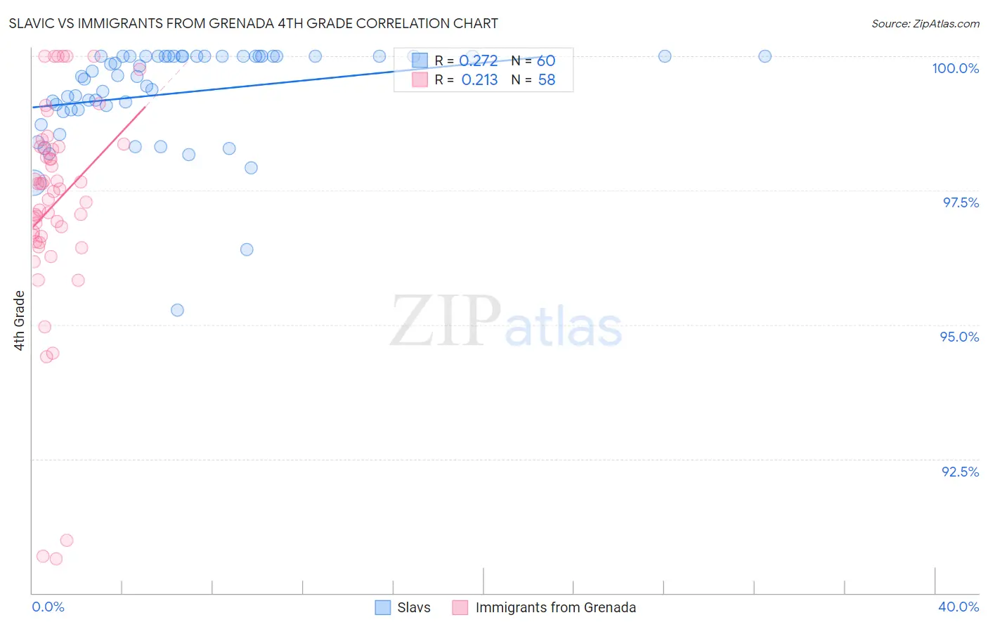 Slavic vs Immigrants from Grenada 4th Grade Correlation Chart
