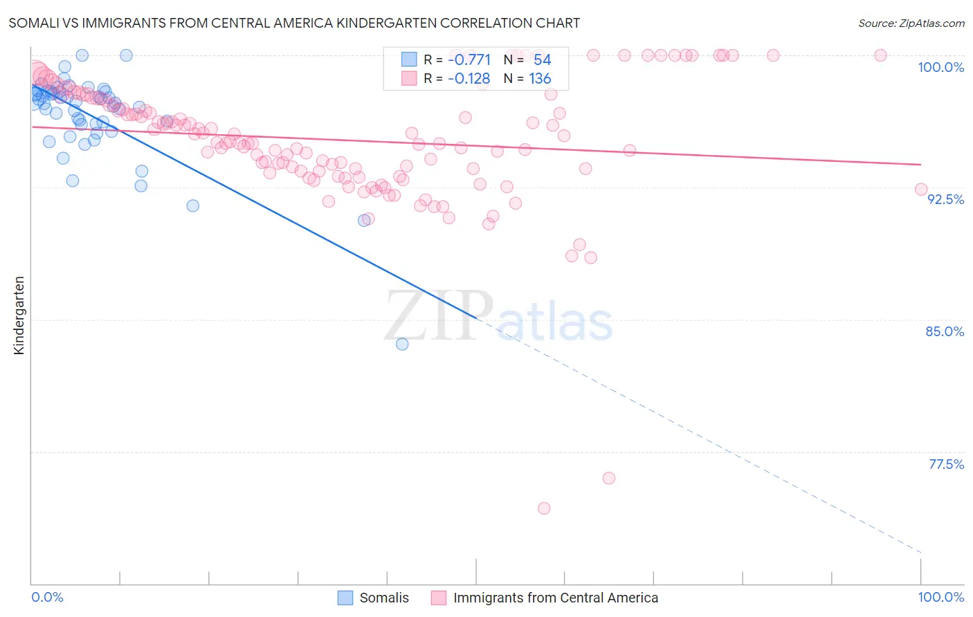 Somali vs Immigrants from Central America Kindergarten Correlation Chart