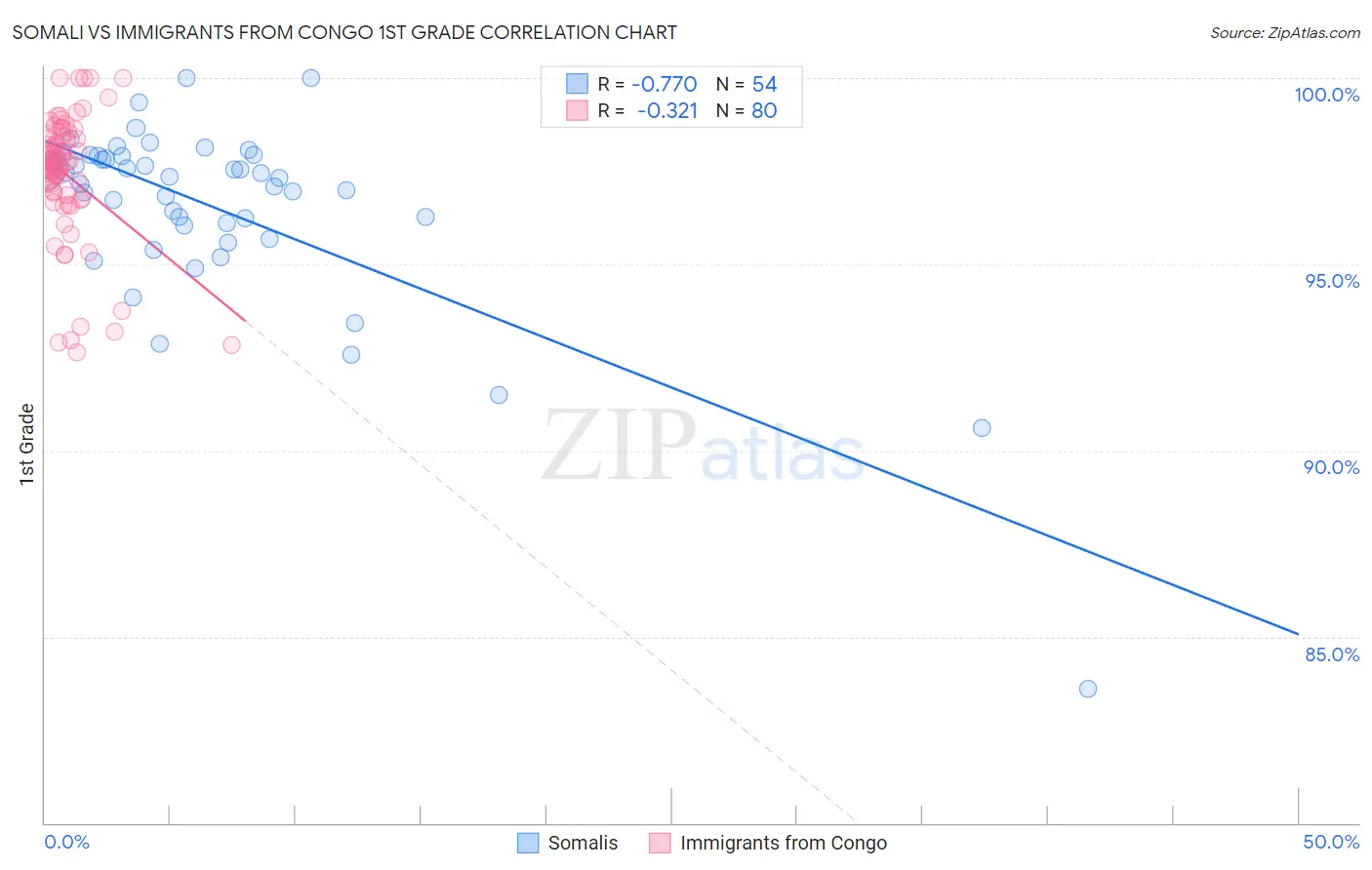 Somali vs Immigrants from Congo 1st Grade Correlation Chart