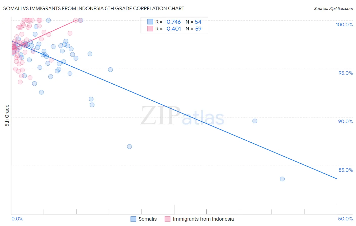 Somali vs Immigrants from Indonesia 5th Grade Correlation Chart