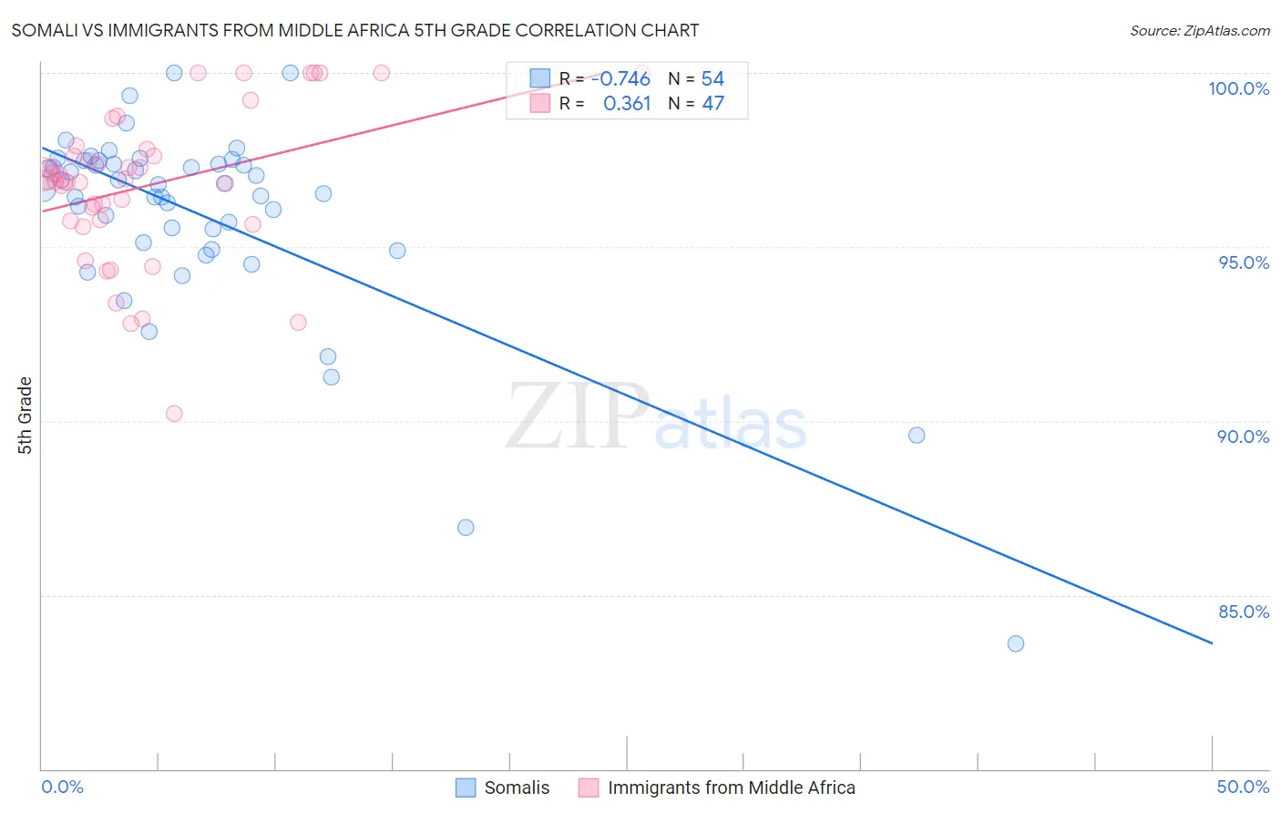 Somali vs Immigrants from Middle Africa 5th Grade Correlation Chart