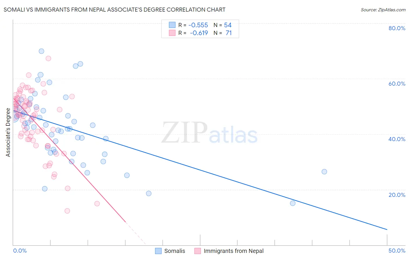 Somali vs Immigrants from Nepal Associate's Degree Correlation Chart