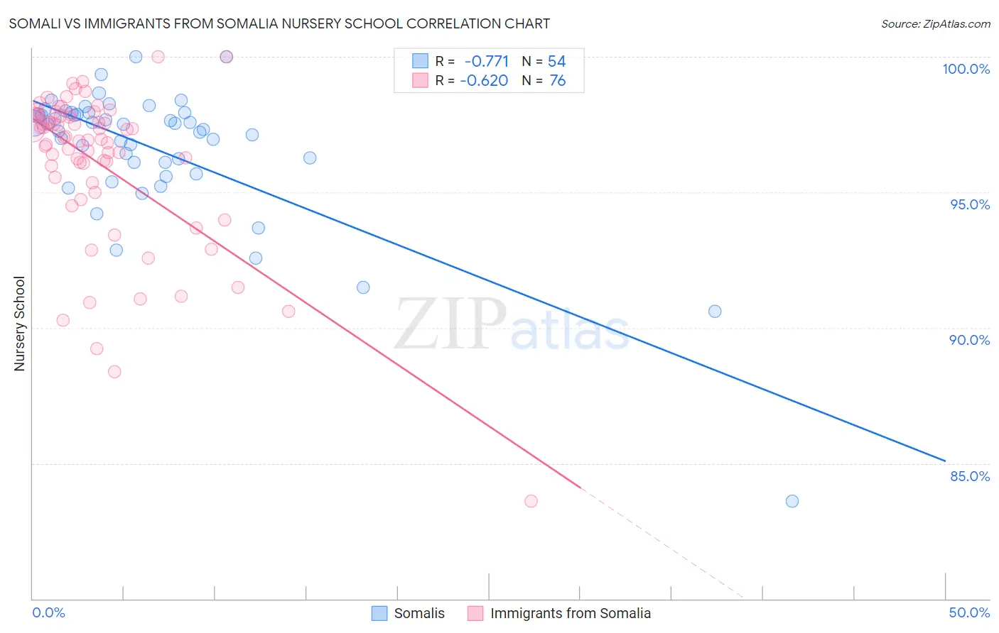 Somali vs Immigrants from Somalia Nursery School Correlation Chart
