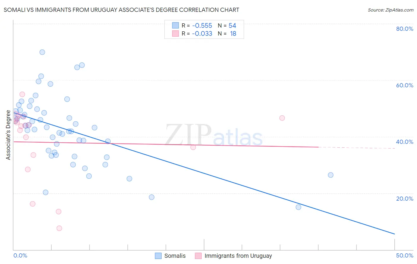 Somali vs Immigrants from Uruguay Associate's Degree Correlation Chart