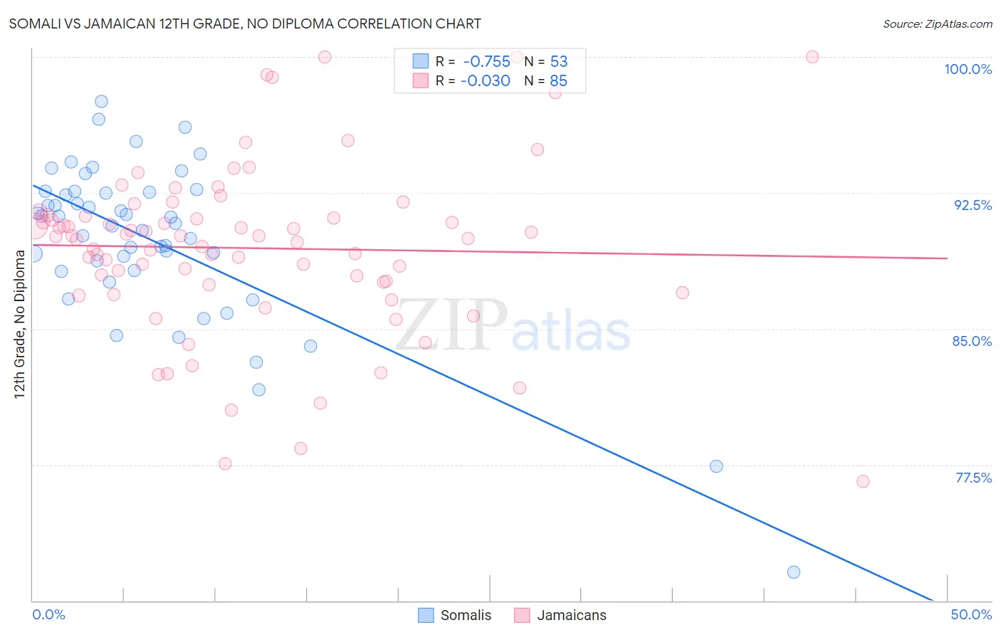 Somali vs Jamaican 12th Grade, No Diploma Correlation Chart