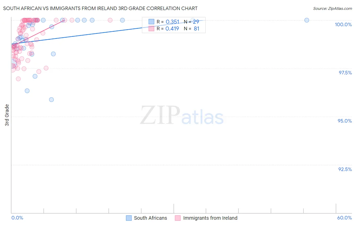 South African vs Immigrants from Ireland 3rd Grade Correlation Chart