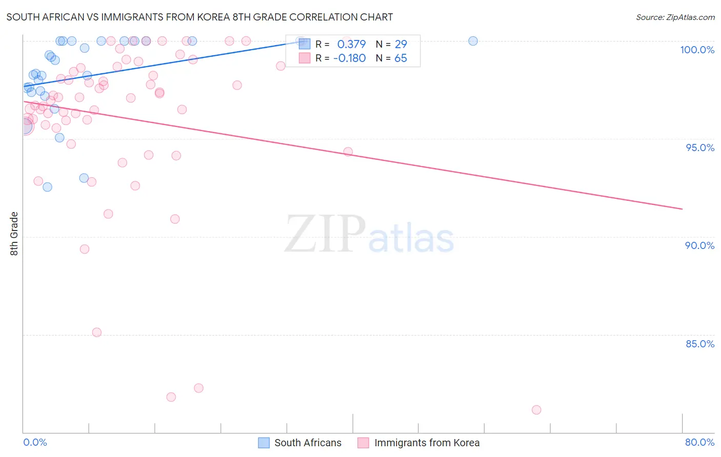 South African vs Immigrants from Korea 8th Grade Correlation Chart