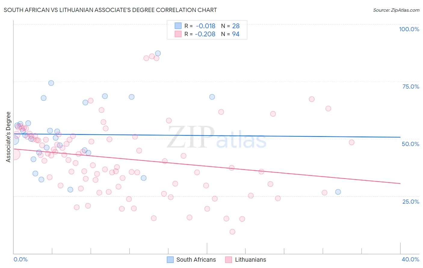 South African vs Lithuanian Associate's Degree Correlation Chart